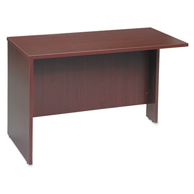 Durable worksurface is scratch- and stain-resistant. Protective PVC edge banding. Not freestanding. Use on right or left side of Bow Front Desk or Rectangular Desk to create an "L" workstation; add a Credenza for a "U" grouping. Color: Mahogany.