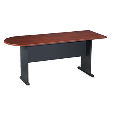 Creates additional workspace or conference area when combined with Workstation Desk and Corner Connector. 1" thick melamine worksurface with high-impact, dent-resistant, rubberized molding. Glare-, scratch- and water-resistant for long-lasting use. Color: Hansen Cherry; Galaxy; Overall Width: 71 1/4".