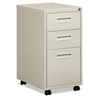 File drawers have high sides for filing front-to-back letter size files. 90% extension cradles with full drawer cradle suspensions on file drawers. 75% extension with nylon roller suspensions on box drawers. Factory installed hangrails. Locking casters. Color: Light Gray; Overall Width: 15"; Overall Depth: 22".