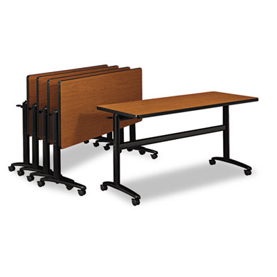 Multipurpose table top is ideal for conference rooms and training facilities. Easy-to-clean high-pressure laminate resists dents and scratches for a long-lasting, like-new appearance. T-mold edge offers a smooth, clean look. Top and Base sold and shipped separately—ORDER BOTH. Top Color: Bourbon Cherry; Base Color: Black; Top Shape: Rectangular.