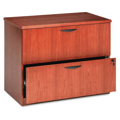 Reinvent your executive offices without reinventing your budget. Hardwood veneer surfaces protected with catalyzed lacquer. Full-extension drawers accommodates letter/legal filing. Anti-tip mechanism allows only one drawer to open at a time. Lock keeps contents safe. Use freestanding or remove top for use under Credenza, Desk or Return Shell (all sold separately). Color: Bourbon Cherry; Overall Width: 36 1/4"; Overall Depth: 22 1/8".