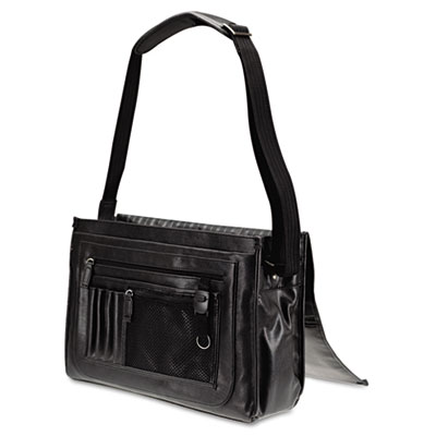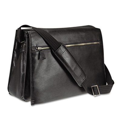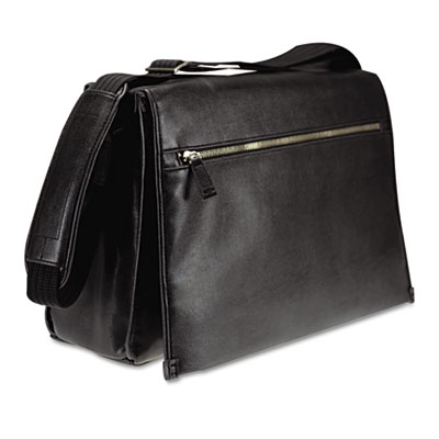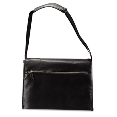 Fashionable yet roomy case can hold all of your business essentials. Interior laptop pocket is padded and protected by hook and loop closure. Interior organizational section includes three media storage pockets, two pen loops and a pocket for a portable device. Exterior organizational section contains four pen loops, detachable key fob and two slip pockets. Exterior flap includes zip pocket. Comfortable padded shoulder strap. For Device Type: Notebook; Material(s): Synthetic Leatherette; Carrying Method: Shoulder Strap.