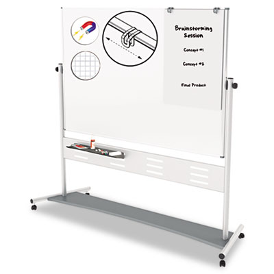 BVCQR5507 MasterVision Revolver Easel, GoldUltra Magnetic, 46 3/4 x 72, 75"H, White/Silver By BI-SILQUE VISUAL COMMUNICATION PRODUCTS INC