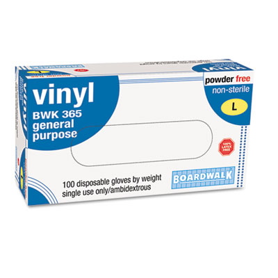 BWK365L General-Purpose Vinyl Gloves, Latex-Free, 4 mils, Large, Clear, 100/Box By BOARDWALK