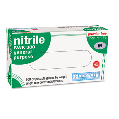 BWK380M Disposable General-Purpose Nitrile Gloves, Medium, Blue, 100/Box By BOARDWALK