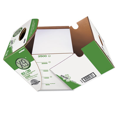 Speed-loading "ream-less" box allows for faster loading in all equipment. Reclosable carton allows you to take the paper you need and protects unused paper from moisture and dust. Easier to open--in just two steps, paper is accessible from all four sides. Easier to lift and move with the integrated wide-grip ergonomic handle—proven to reduce risk of musculoskeletal injury, fatigue and discomfort. Reduces physical demands by 50% versus traditional paper packaging. Acid-free for archival quality. Size: 8 1/2 x 11; Paper Color(s): White; Paper Weight: 20 lb..