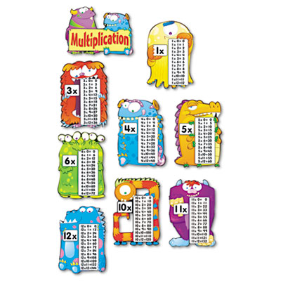 Friendly multiplication monsters make learning facts fun! Students will be eager to finish one table to see who's holding the next one. Set includes 13 multiplication tables, banner and a resource guide. Each monster is approximately 11 1/2 x 16 1/2. Theme: Multiplication Fact Monsters.