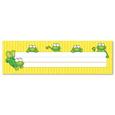 Bring some fun into your classroom with these bright ideas for identifying students' materials! Colorful desk nameplates can double as labels, locker tags, bookmarks and more. Can be cut in half to provide 72 individual tags. Theme: Frogs; Width: 9 1/2".