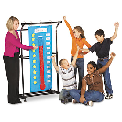 Ideal for teaching temperature in the classroom and a perfect tool for tracking progress to meet goals. Gauge strip easily adjusts from the back. With 22 clear vinyl pockets. Includes 48 write-on/wipe-away cards (19 number cards, one Fahrenheit card, one Celsius card, four word cards and 23 blank cards) plus a resource guide. Pocket Chart Type: Thermometer/Goal Gauge; Total Pockets: 22; Width: 21".