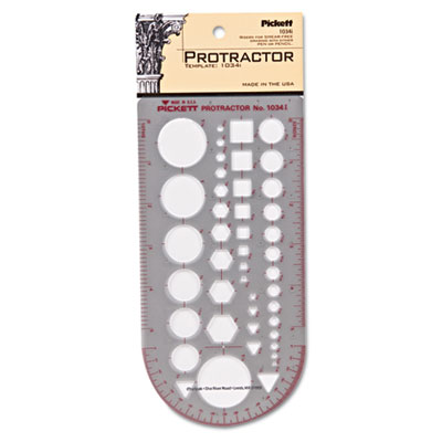 Created for the needs of architects, drafters and contractors. Smooth apertures and risers on the underside of the template promote ease of movement as well as help prevent smudging from writing instruments. These smoke gray templates are .03" thick. Also includes 180° protractor and inch scale. Color(s): Smoke; Material(s): Plastic; Length: 11".