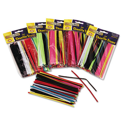 CKC710001 Regular Stems, 6" x 4mm, Metal Wire, Polyester, Assorted, 100/Pack By THE CHENILLE KRAFT COMPANY