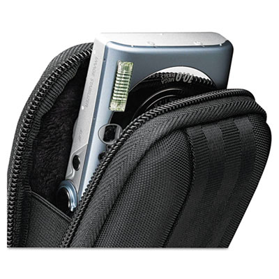 Compact case fits most small point and shoot cameras. EVA shell protects camera from daily wear and tear. Plush interior cushions camera. Interior slip pocket for SD card or battery storage. Three-way attachment (lanyard, belt loop, wrist strap). Screen-safe snap™ protects delicate camera LCD. For Device Type: Point and Shoot Camera; Material(s): Polyester;EVA; Carrying Method: Lanyard;Belt Loop;Wrist Strap.