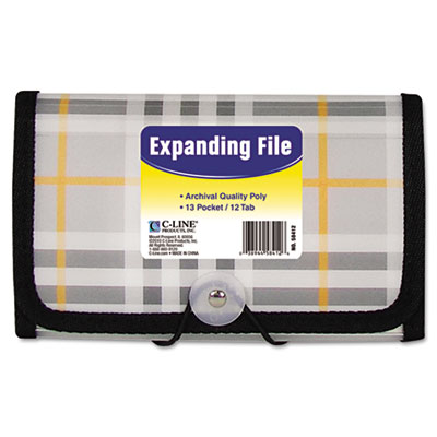 CLI58412 Expanding File, Plaid, Coupon, 13 pockets, 1.5" Exp., 1/EA By C-LINE PRODUCTS, INC
