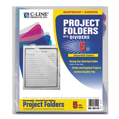 CLI62110 Project Folders with Dividers, Letter, 1/3 Tab, Clear/Colored, 5/PK By C-LINE PRODUCTS, INC