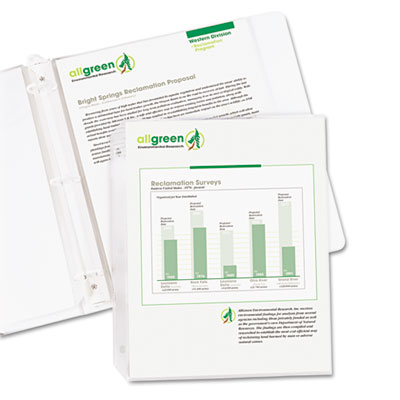 Biodegradable polypropylene sheet protectors are constructed out of standard weight material. Top loading design adequately stores documents without taking up additional binder space. The acid-free, archival quality eliminates photocopy transfer. Holders are pre-punched to fit with standard three-ring binders. Provides durable storage for letter-size documents. Load Orientation: Top; Sheet Capacity: 2; Sheet Protector Type: Ring Binder.