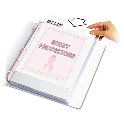 CLI62677 Pink Ribbon Sheet Protector, Clear, Polypropylene, 11 x 8 1/2, 80/BX By C-LINE PRODUCTS, INC