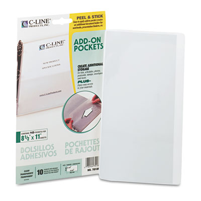 CLI70185 Peel & Stick Add-On Filing Pockets, 5-1/8 x 8-3/4, 10/Pack By C-LINE PRODUCTS, INC