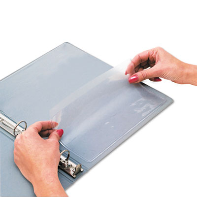 Self-adhesive polypropylene holders affix to binders, file folders, date books, and report covers to create an additional pocket for storing documents. Peel away liner and stick—no need for staples or paper clips. Provides convenient storage for charts, maps, lists and other full-size documents. Archival quality eliminates photocopy transfer. Pocket can hold letter size documents. Load Orientation: Top; Sheet Capacity: 10; Sheet Protector Type: Self-Adhesive.