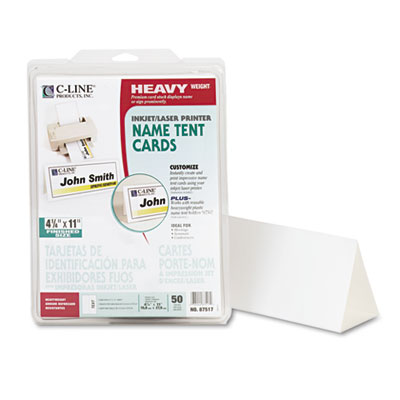 CLI87517 Printer-Ready Name Tent Cards, 4-1/4 x 11, White Cardstock, 50 Letter Sheets/Box By C-LINE PRODUCTS, INC