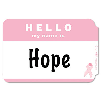CLI92244 Pressue Sensitive Badges, Pink Ribbon, Hello My Name Is, 3-1/2 x 2-1/4, 75/BX By C-LINE PRODUCTS, INC