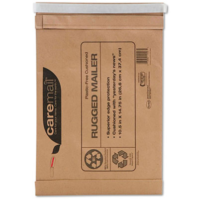 Double folded corners provide superior edge protection. Recycled newsprint acts as an ingeniously effective cushioning material. Self-adhesive closure and horizontally oriented tear strip make sealing and opening easy. Features a "no-mess" tear-strip opener. Envelope Size: 14 x 18 3/4; Envelope/Mailer Type: Recycled Padded Mailer; Closure: Self-Adhesive.