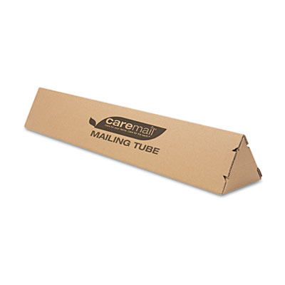 One piece, triangular design corrugate mailing tube. No additional plastic end caps are required. Shipped and stored flat. Conveyor friendly, won't roll. Length: 36 in; Width: 6"; Depth: 6".
