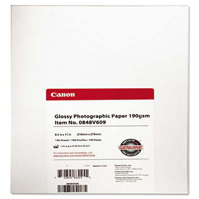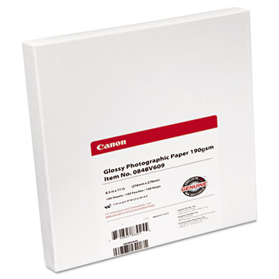 CNM0848V609 Glossy Photographic Paper, 190 gsm, 8-1/2 x 11, 100 Sheets/Box By CANON USA, INC.