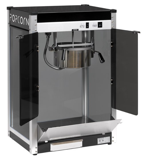 Now most "Bang For Your Buck" popcorn machine is available in this modern contemporary cabinet. It's Paragon's largest capacity popper that doens't require anything more than standard household current.The Contempo 8 is a real work-horse with its 1250 watt Hard-coat anodized aluminum kettle producing 147 one-ounce servings per hour. Complete with Paragon's exclusive three year warranty.