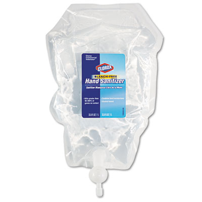 Formulated to help kill 99.999% of germs within 15 seconds. Non-drying formula contains natural ingredients and emollients to keep hands moisturized and soft without leaving a sticky or greasy residue. No-clog pump bottles. Long shelf life; formula will stay active for up to 12 months. Bleach-free formula is color- and fabric-safe. Fits Clorox® dispenser Clorox® 01752 (sold separately). Large quantity means less frequent refills. Hand Sanitizers Type: Liquid; Color(s): Clear; For Use With: Clorox® 01752.
