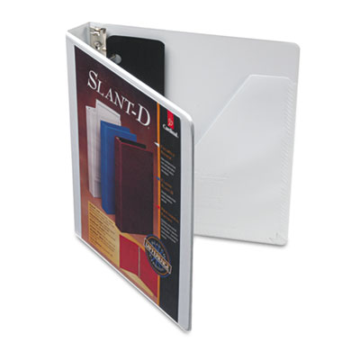 Locking Slant-D® rings secure binder contents and keep ring wires aligned. Holds 25% - 50% more than conventional round ring binders. Made from the heaviest vinyl in the industry. Clear overlay on front cover, back cover and spine allows insertion of custom title sheets for a professional looking presentation. Expand-A-Pocket® in back expands to hold up to 1/2" stack of materials. Exclusive DataGuard™ Pocket inside front protects documents from damage. Capacity Range [Max]: 1"; Sheet Capacity: 270; Color(s): White.
