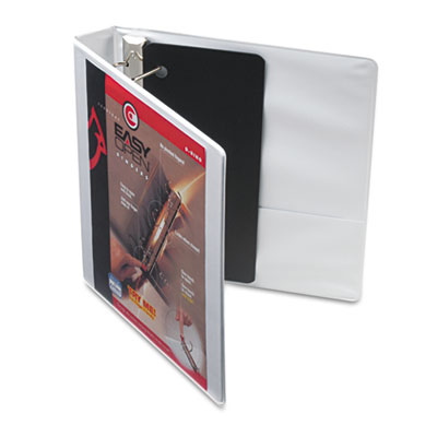 EasyOpen® locking Slant-D® ring mechanism instantly engages when closed, eliminating two-step and two-hand operation. No scratched desks or bookshelves from triggers that don't close up. Opens and closes with just the touch of one finger which earned this binder the "Ease-Of-Use" Commendation from the Arthritis Foundation. Safer and easier to use than other metal ring binders—no more pinched fingers. Holds 25% more than conventional round ring binders. Clear overlay on front cover, back cover and spine allows insertion of custom title sheets for a professional looking presentation. Capacity Range [Max]: 1 1/2"; Sheet Capacity: 325; Color(s): White.