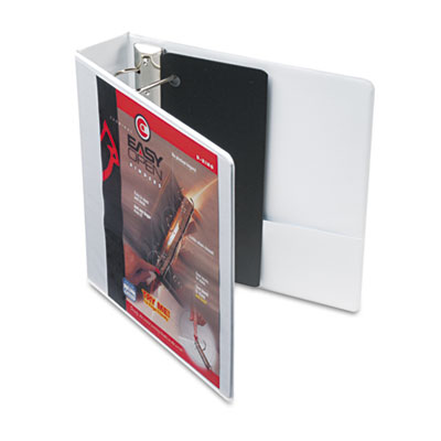 EasyOpen® locking Slant-D® ring mechanism instantly engages when closed, eliminating two-step and two-hand operation. No scratched desks or bookshelves from triggers that don't close up. Opens and closes with just the touch of one finger which earned this binder the "Ease-Of-Use" Commendation from the Arthritis Foundation. Safer and easier to use than other metal ring binders—no more pinched fingers. Holds 25% more than conventional round ring binders. Clear overlay on front cover, back cover and spine allows insertion of custom title sheets for a professional looking presentation. Capacity Range [Max]: 2"; Sheet Capacity: 500; Color(s): White.