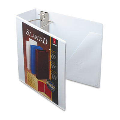 Locking Slant-D® rings secure binder contents and keep ring wires aligned. Holds 25% - 50% more than conventional round ring binders. Made from the heaviest vinyl in the industry. Clear overlay on front cover, back cover and spine allows insertion of custom title sheets for a professional looking presentation. Expand-A-Pocket® in back expands to hold up to 1/2" stack of materials. Exclusive DataGuard™ Pocket inside front protects documents from damage. Capacity Range [Max]: 4"; Sheet Capacity: 890; Color(s): White.