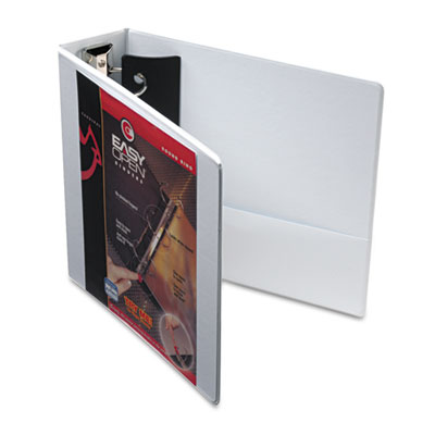 EasyOpen® locking round ring mechanism instantly engages when closed, eliminating two-step and two-hand operation. No scratched desks or bookshelves from triggers that don't close up. Opens and closes with just the touch of one finger which earned this binder the "Ease-Of-Use" Commendation from the Arthritis Foundation. Safer and easier to use than other metal ring binders—no more pinched fingers. Two inside pockets for additional storage. Capacity Range [Max]: 3"; Sheet Capacity: 575; Color(s): White.