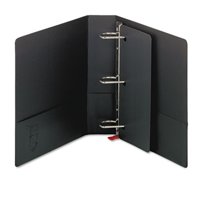 EasyOpenŽ rings open, close and lock with one touch. Locking Sland-DŽ rings hold 25% more than standard round rings. Heavy-duty construction featuring durable poly and chipboard. Transfer-safe material will not damage photos or documents. Ease-Of-Use Commendation from the Arthritis Foundation. Two inside pockets for additional storage. Capacity Range [Max]: 2"; Sheet Capacity: 500; Color(s): Black.