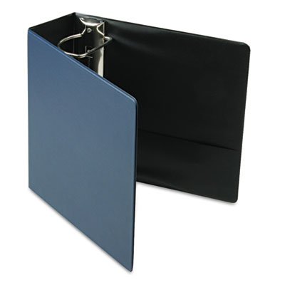 EasyOpenŽ rings open, close and lock with one touch. Locking Sland-DŽ rings hold 25% more than standard round rings. Heavy-duty construction featuring durable poly and chipboard. Transfer-safe material will not damage photos or documents. Ease-Of-Use Commendation from the Arthritis Foundation. Two inside pockets for additional storage. Capacity Range [Max]: 4"; Sheet Capacity: 775; Color(s): Navy.