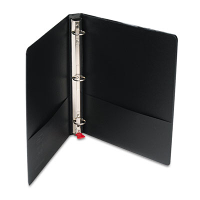 EasyOpenŽ locking round ring mechanism instantly engages when closed, eliminating two-step and two-hand operation. No scratched desks or bookshelves from triggers that don't close properly. Rings open, close and lock with just the touch of one finger. Two inside pockets for additional storage. Label holder to assist with easy identification of binder contents. Capacity Range [Max]: 1"; Sheet Capacity: 200; Color(s): Black.