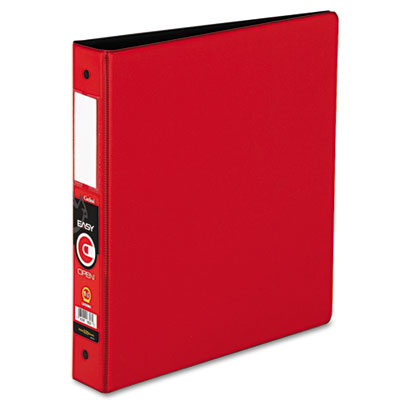 EasyOpenŽ locking round ring mechanism instantly engages when closed, eliminating two-step and two-hand operation. No scratched desks or bookshelves from triggers that don't close properly. Rings open, close and lock with just the touch of one finger. Two inside pockets for additional storage. Label holder to assist with easy identification of binder contents. Capacity Range [Max]: 1 1/2"; Sheet Capacity: 325; Color(s): Red.