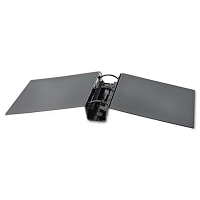 Molded with 90% recycled polypropylene; binder is 100% recyclable, including the rings, with no disassembly required. Heavyweight construction—guaranteed five years not to crack or break. Durable living hinge is cold-crack tested to 10°F. One-touch trigger opens rings to two positions: halfway for easy page viewing or completely for loading. Ergonomic grip on spine for quick shelf removal. Oversized label holder. Capacity Range [Max]: 2"; Sheet Capacity: 350; Color(s): Black.