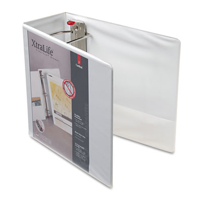 Locking Slant-D® rings with GelTab™ open and close triggers hold more, stay aligned and won't accidentally open and spill. Nonstick clear overlay lets you create custom binder covers and spines for a professional-looking presentation and won't stick to any printed pages or damage photos. XtraLife® Hinge design for maximum strength and durability. Two inside pockets for additional storage. Finger hole in the spine allows for easy shelf removal. Capacity Range [Max]: 5"; Sheet Capacity: 1,100; Color(s): White.
