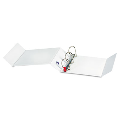PVC-free poly material won't stick to cover inserts or materials stored inside. Magnetic flap closures connect when closed to keep binder in a secure standing position. Clear overlay on front cover, back cover and spine allows insertion of custom title sheets. Slant-D® no-pinch rings hold 25% more than standard round rings and open, close and lock with just one touch. Easy-pull finger hole in spine; five colored rings included for color-coded identification. Capacity Range [Max]: 4"; Sheet Capacity: 775; Color(s): White.