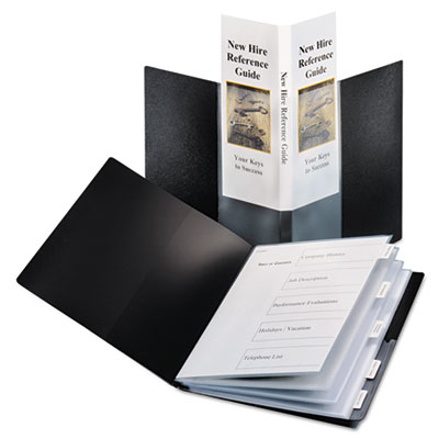 Wraparound spine pocket customizes front, back and spine with single sheets. Clear pockets hold up to 48 pages. Includes five tabbed dividers that can be positioned anywhere in book. Number of Sleeves: 24; Front Cover Color(s): Black; Back Cover Color(s): Black.