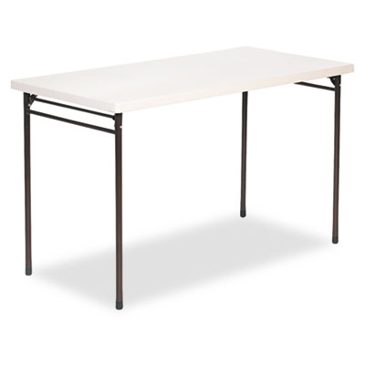 Designed for light-duty indoor/outdoor use. Holds 1,500-lbs. evenly distributed. 2" molded ABS top. Folds flat for compact storage. Off-white with bronze legs. Top Color: Off-White/Bronze; Top Shape: Rectangular.