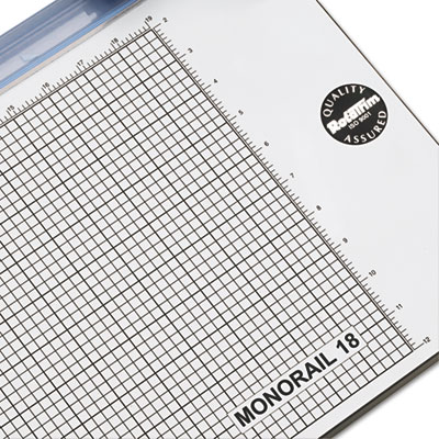 A premium trimmer specially designed for medium volume office and classroom applications. Sturdy 3 1/2" thick wood MDF base is calibrated and features preset measurements for common-sized items. Extra rigid guide rails and nylon bearings. Lockable sliding metal backstop for multiple same-sized cuts. Accepts wide-format output from poster-sized inkjet printers. Also trims card stock, acetate, cardboard, drafting film, illustration board, leather, black core artist mat board, plastic sheets, laminates, tissue paper and much more. Trimmer Board Type: Rotary; Sheet Capacity: 20; Cut Length: 18".