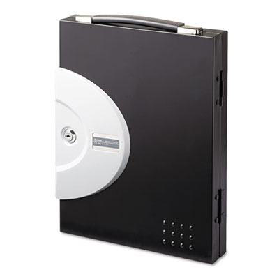 Stylish security cabinet for keys has carry handle for portable use. Easy to organize and track with numbered, colored key tags and hangers. Easy to lock securely. Wall mounting option. Key Capacity: 32; Material(s): Steel; Color(s): Black.
