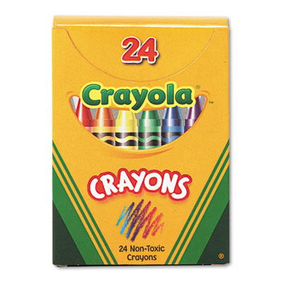 Vibrant, classic crayons. Robust color assortment of true hues and intense brightness in primary and secondary colors. Double wrapped for extra strength and durability. Non-washable. Color(s): 24 Assorted.