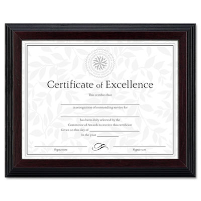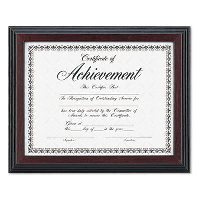 Handsome frame with black ridge and walnut accents showcases your award or certificate. Comes with a classic, beveled stepped edge. Versatile, it hangs vertically or horizontally. Easel back for desktop or wall mount. Frame Type: Certificate;Document; Frame Material: Wood; Frame Color: Black/Walnut.