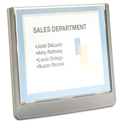 Signage made simple! So easy to keep current. Easy-open, transparent acrylic window lets you update messages in seconds. Ideal solution for interior signage to identify room functions, employee names and titles, tenant names and more. Log on to www.durableofficeproducts.com for free insert design software download. Screws and anchors for wall mounting as well as adhesive pads for mounting to other surfaces included with each sign holder. Frame Color: Graphite; Size: 6 3/4 x 1/2 x 5 1/8.