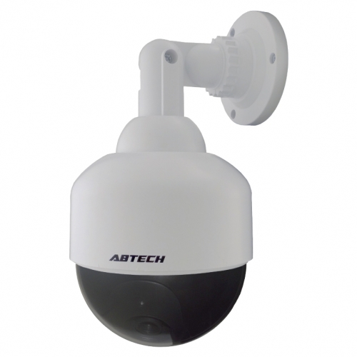 Now you can deter robbery, theft, and vandalism without the high cost of a real security camera. Even the most sophisticated criminals will think the premises are guarded by a high-tech surveillance system and go in search of an easier target. In fact, this is an actual surveillance camera that has been modified into a "dummy" or fake security camera. It has a flashing LED light so it can be noticed at night or day and will stand out to potential thieves or shoplifters and make them think twice. This camera is great security for parking lots or near the front door of a home, store, or business. LED Light to make it noticeable. It has an adjustable plastic mounting bracket so it can be wall or ceiling mounted. This camera measures 10 three-quarter x 5 inches (the dome measures 4 inches). Installs quickly and easily using the included stainless steel screws. Requires two AA Batteries