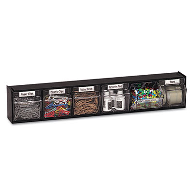 DEF20604OP Tilt Bin Plastic Storage System w/6 Bins, 23 5/8 x 3 5/8 x 4 1/2, Black By DEFLECTO CORPORATION
